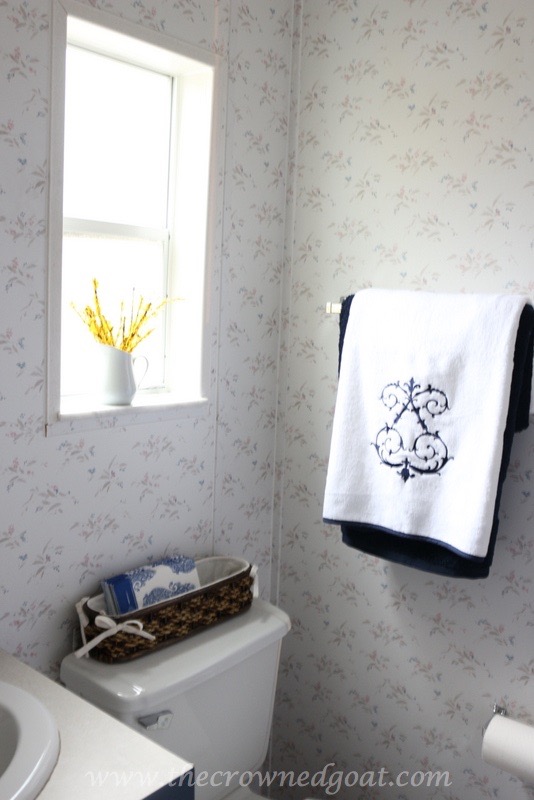 Pretty, Coco! Love the blue and white accents. I just painted our bathroom light fixture by brushing on metallic paint while it was still on the wall, can’t imagine spraying! 🙂