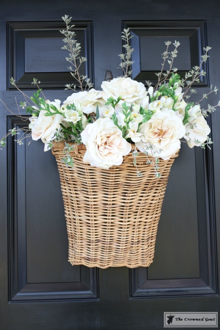 The front door is always a great place to start decorating no matter if you have a big porch or a small stoop at your apartment. I picked up this flower market style basket at the thrift store for $2.50 and filled it with a mix of faux and fresh flowers from around our property. You can find out how to make something similar here.