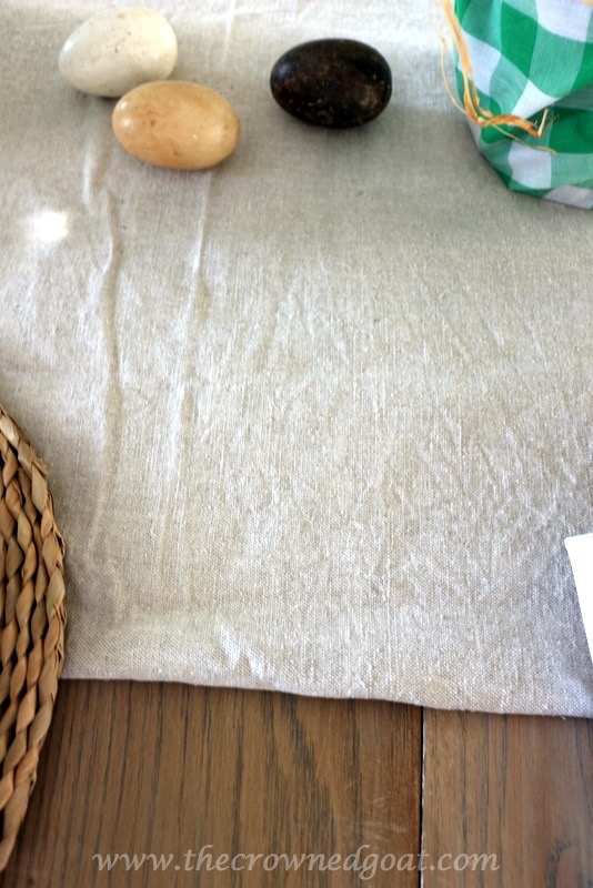 I bought this nubby fabric while out shopping with my mom recently. It’s a really pretty gray and totally neutral for a table runner. Looking for fabric remnants like this one can be an inexpensive option for Spring pillows, napkins and table linens too.