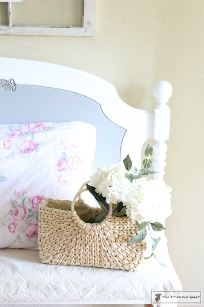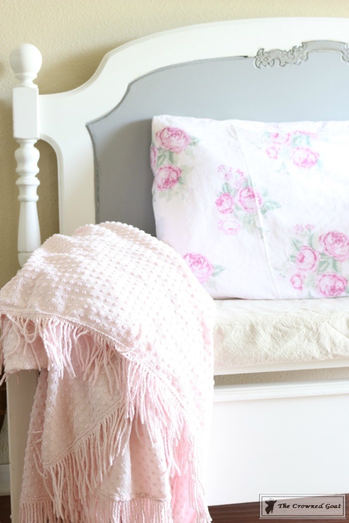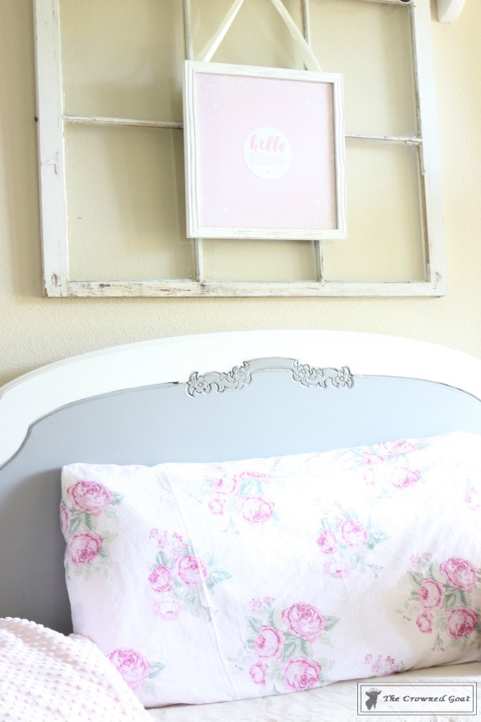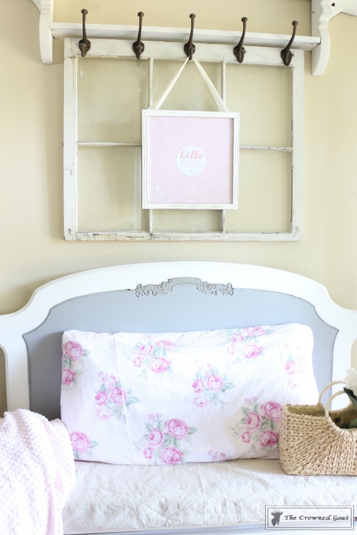 After the sign was hung I decided to add other shades of pink to the space so I used this Shabby Chic for Target curtain panel as a pillowcase