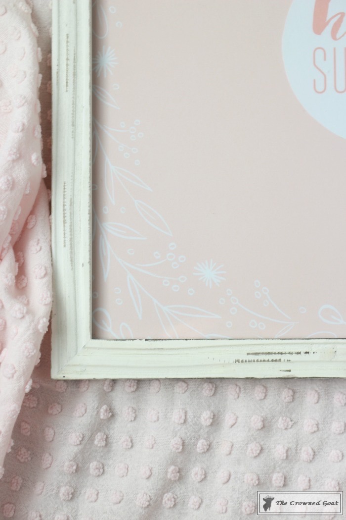 We knew we wanted to continue the soft pinks and whites we had been using on the front porch but for some reason we just couldn’t find any special artwork to go with all the fun flowers. Thankfully, Beth from Limepeel Designs reached out to us and saved the day.