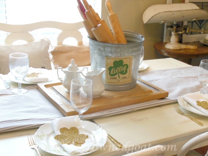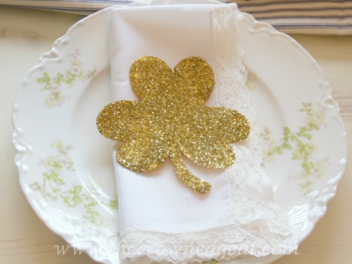 or the time I put together a St. Patrick’s Day themed dinner complete with gold glittered shamrocks and my favorite bits of vintage.