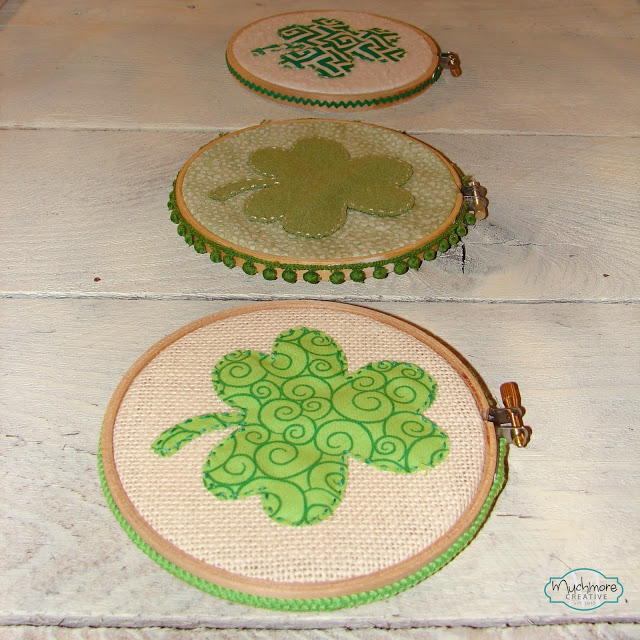 I’m crushing on this Shamrock Hoop Art from Much More Creative too. I love the different trim and fabric options Brenda chose.