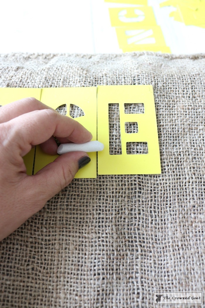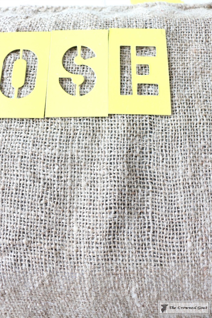 Stenciled Feed Sack Pillow Covers Steps
