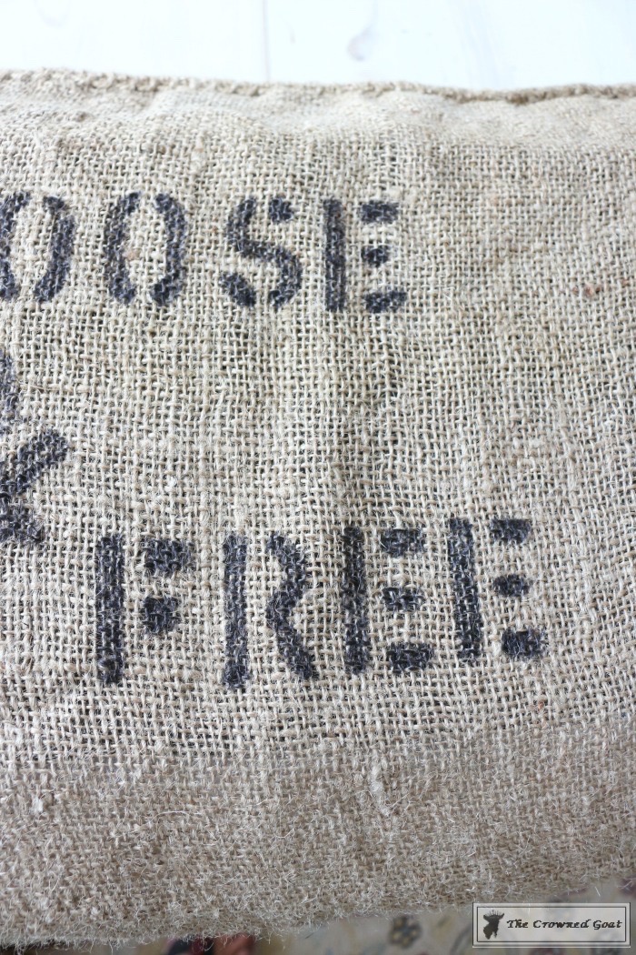 Feed sacks are great for the fall and winter season because you can use them for potato sack races at festivals, as blankets over hay bales for extra seating and pillow covers too. I slipped these burlap feed sacks over a king size pillow and they were a perfect fit.