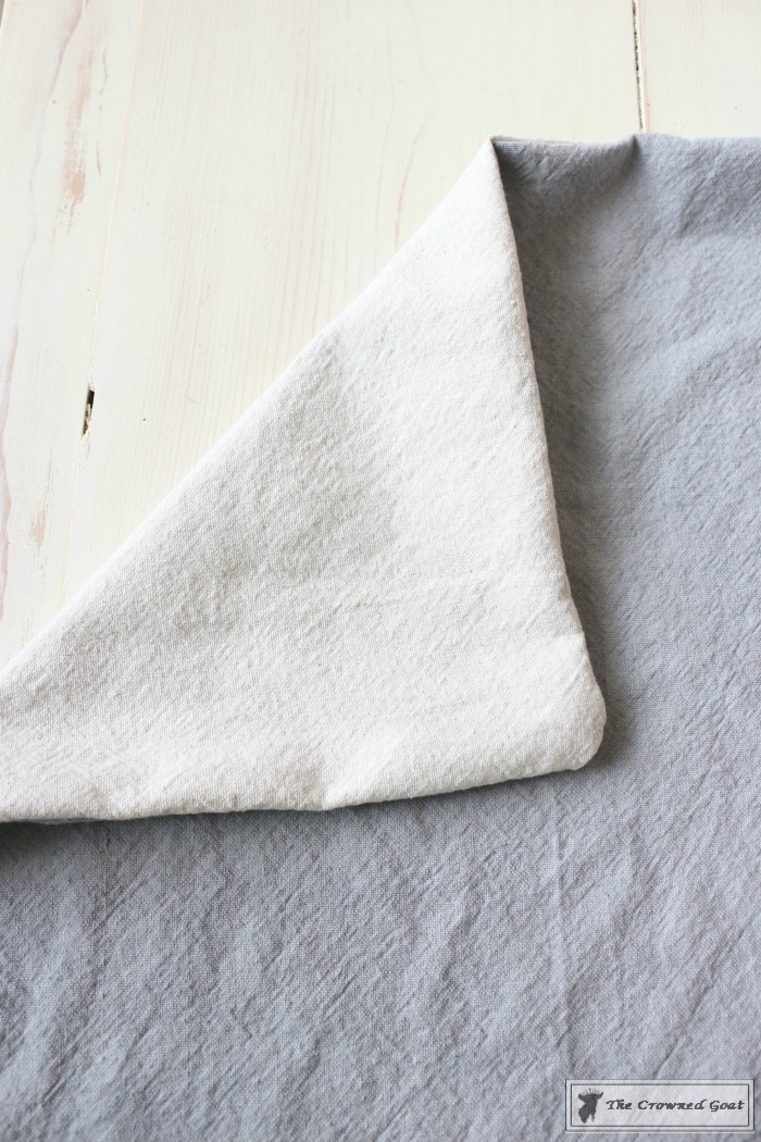 We almost always buy pillow covers or make them using a simple envelope technique because the pillows can be taken out and the covers washed with minimal effort. Anytime you have pets, littles or lots of movie nights being able to remove the pillow covers easily is a must. These are gray on the front and the oatmeal color of canvas on the back.