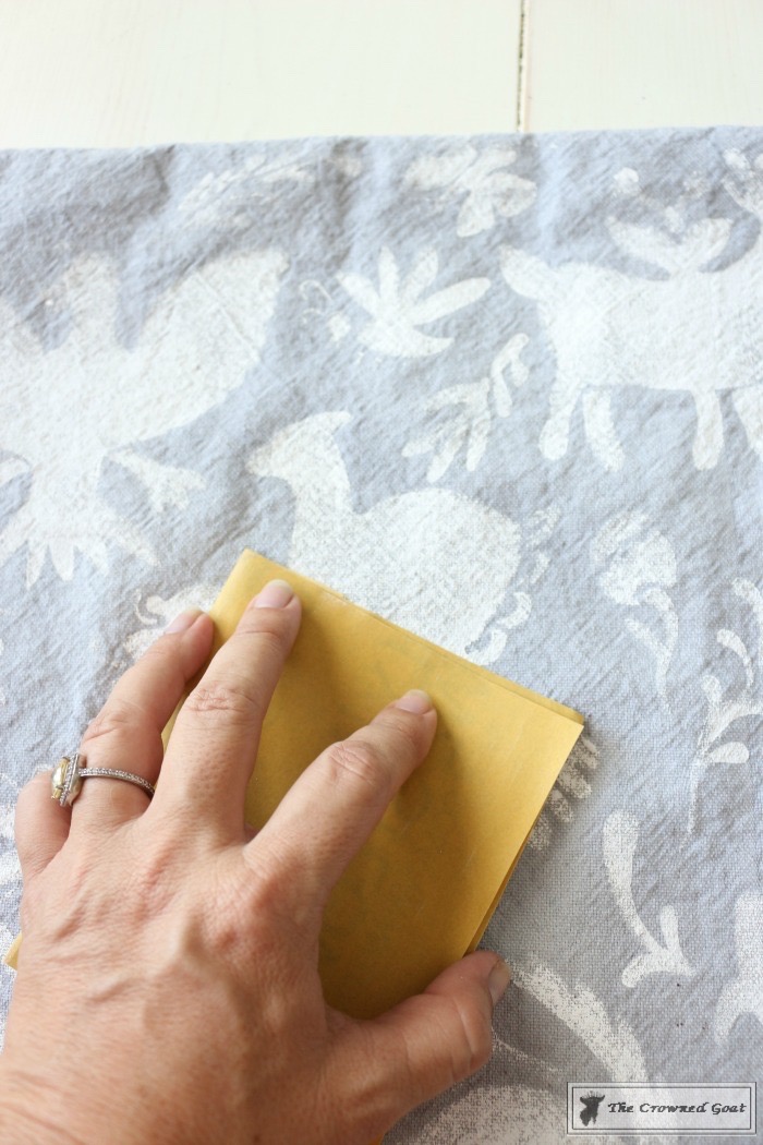 Depending on amount of paint you’ve used your fabric may feel a little stiff. In this case, you may want to consider using a piece of 200 grit sandpaper and lightly sand over the stencil.