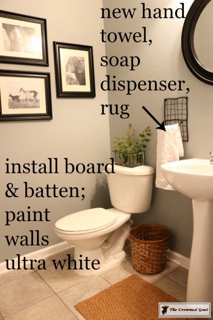 Half Bath – We really haven’t changed this space at all over the years. I still love the black and white goat photographs and the color of the walls too. I’m hoping we can add board and batten in this room. I think it would really make the entire space look bigger. We probably already have the materials we would need to finish it too. If we were to update this space in the meantime, it would be with a new rug, vanity light globes, towel and soap dispenser.