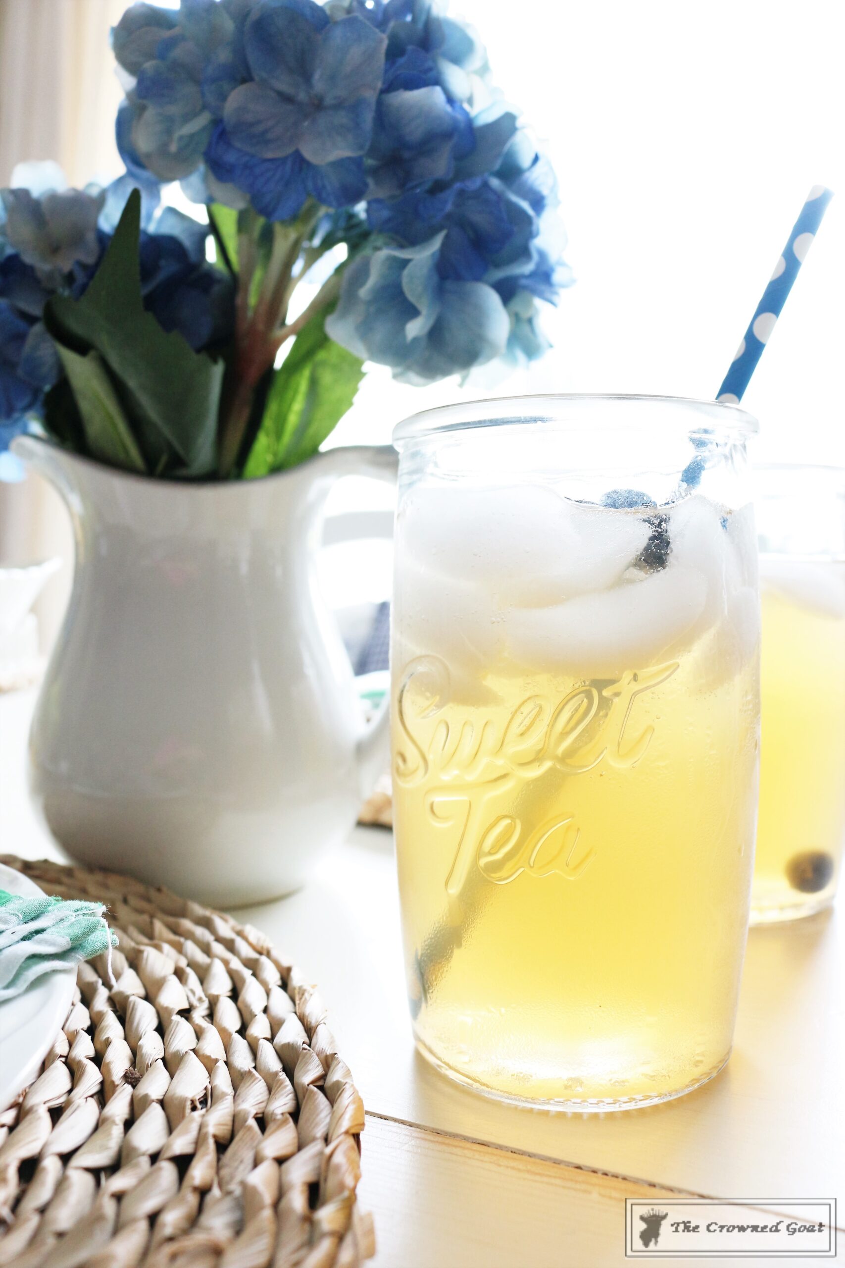 We drink a good amount of sweet tea, lemonade and fruit infused water each day so I thought it would be fun to make a peach ice tea and drop in a few blueberries. I’m always looking for glasses that have a vintage feel yet are sturdy enough to handle frequent use. As soon as I saw these Sweet Tea Highball Glasses from Kirkland’s I was totally smitten. They are a bargain at $9.99 (not including tax or shipping) for a set of 4 glasses. We’re hosting a barbeque in a couple of weeks so I’m hoping to pick up a few extra sets for the event.