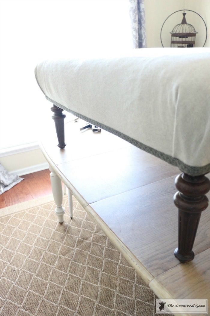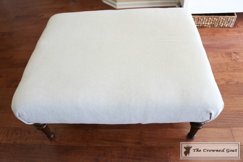 Here’s a look at the ottoman once we finished the nubby fabric layer.
