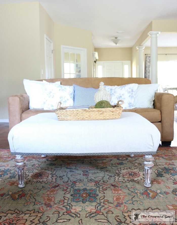Wow I love a huge ottoman like that, such a great piece of furniture! All that work was totally worth it, it looks amazing now! (And can I just drool about your rug???!)