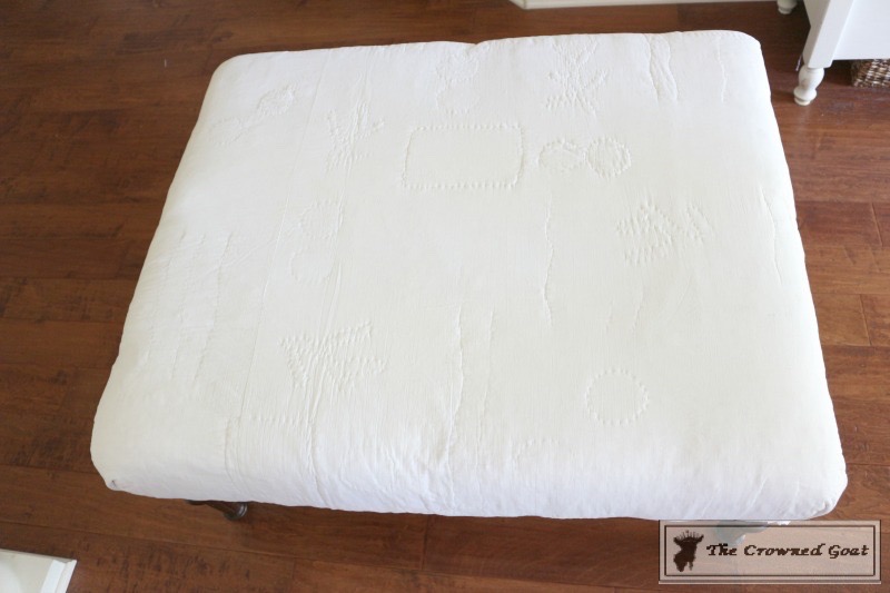 Here’s a look at the ottoman once the quilt had been completely secured.