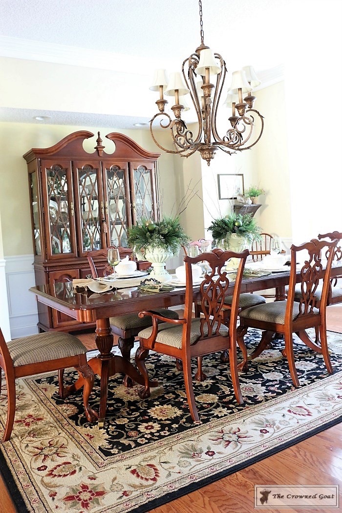As soon as you walk through the front door of Bliss Barracks, you can see the dining room. For this reason, my mom almost always keeps table set. We’ve shared countless meals, lots of laughter and even a few tears at this table. We’ve gone from needing 5 place settings to 12 in just a few short years. Gathering around the table is one of our favorite activities no matter if we’re at Loblolly Manor or Bliss Barracks. Here’s a peek at how we’ve decorated the traditional dining room for Christmas at Bliss Barracks…