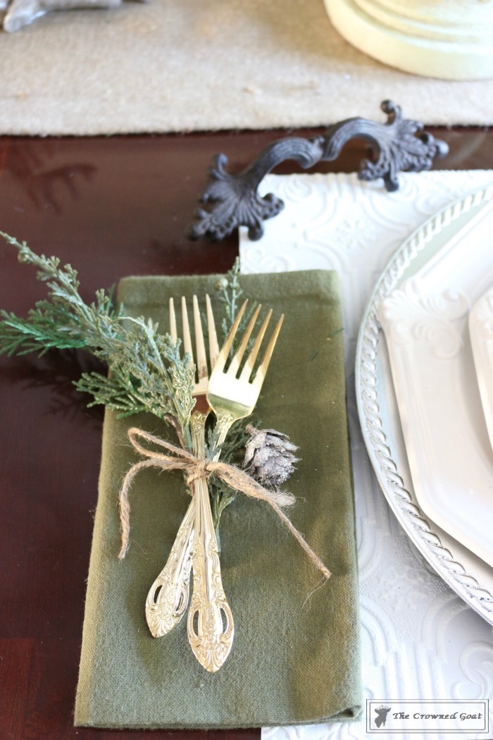 Adding a few sprigs of greenery and a colorful napkin can help add a festive touch to your flatware.