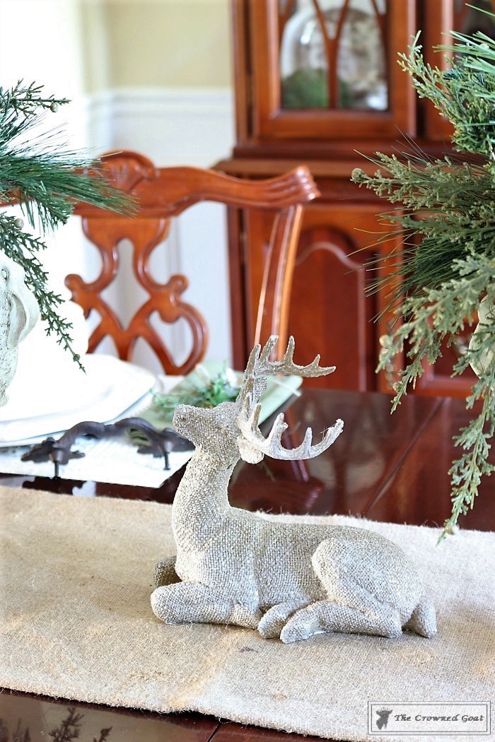 Keeping the color palette simple in the dining room, we decided to add just a bit of glitz with the silver deer.