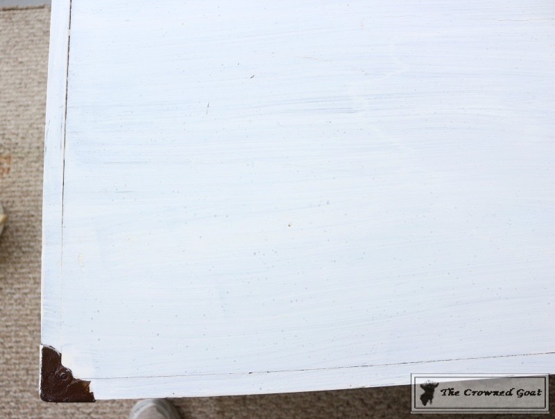 This is after three. Sometimes it takes multiple coats of paint to get good coverage especially with white and off white paint. If brush strokes drive you bananas, consider using a sponge roller made for painting cabinets.