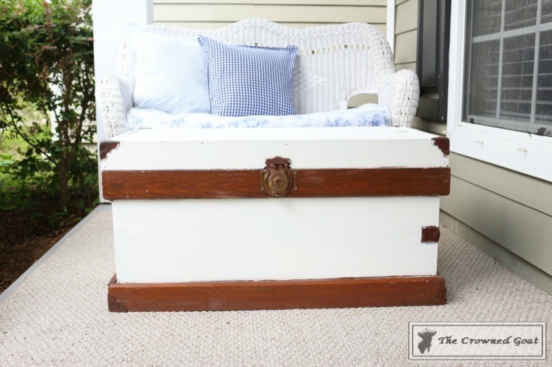 I’ve had this old trunk for a while now. I picked it up at my favorite shopping spot The Warehouse which is now out of business. At the time, I didn’t really have a vision for it and I liked the way the wood warmed up the front porch so I just left it in this state for a few seasons.