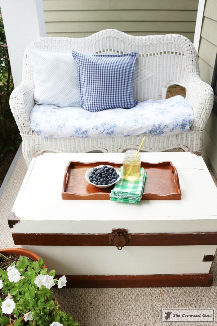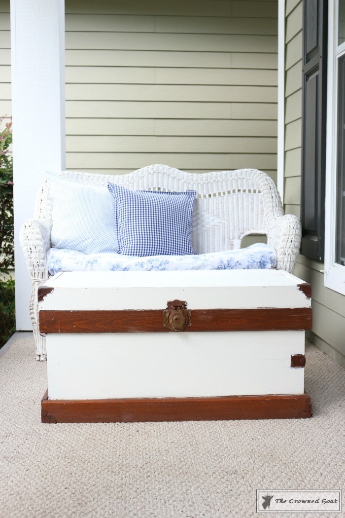As I shared on the Patriotic Summer Home Tour post, the wicker settee and the old trunk got a bit of a makeover but they almost didn’t happen at all.