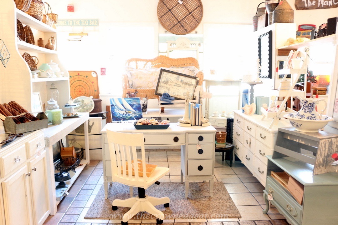 I recently painted this desk on location at The Pickers Market. I’ve been a vendor there for a few years now. Originally, I brought the desk to my booth unpainted because I thought the wood was too pretty to paint over. But after a few months of little interest, I decided to see if painting it would help give the desk a fresh look. I was totally blown away when it sold the very next day.